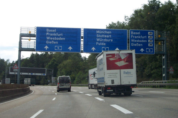 eigens für sie errichtete Fahrspur zu benutzen, wenn sie auf der A 5 weiterfahren wollen.