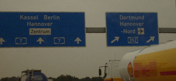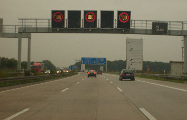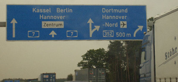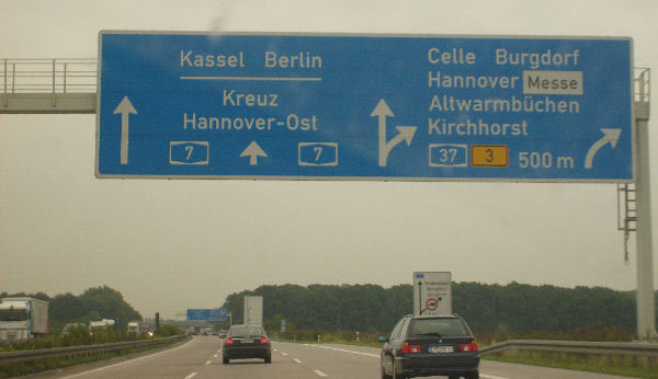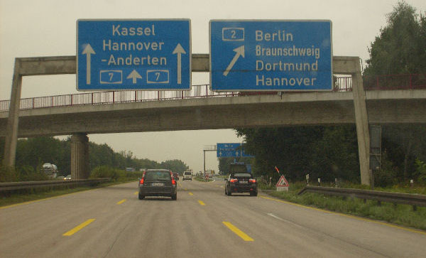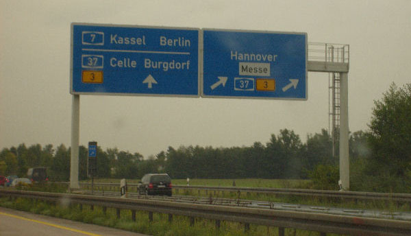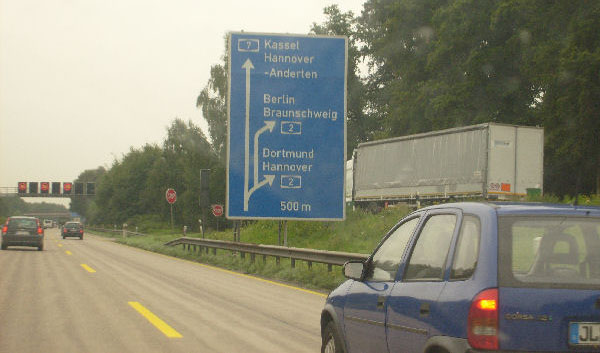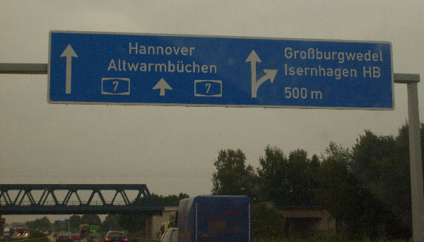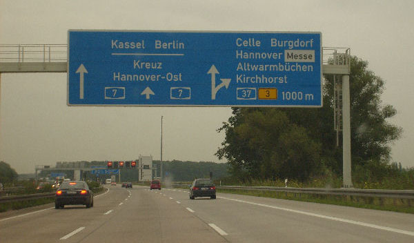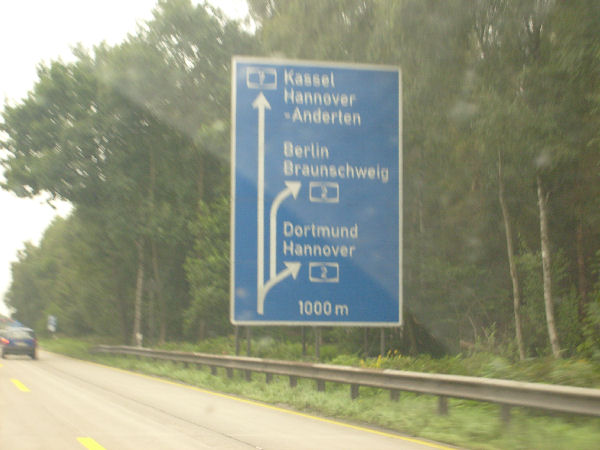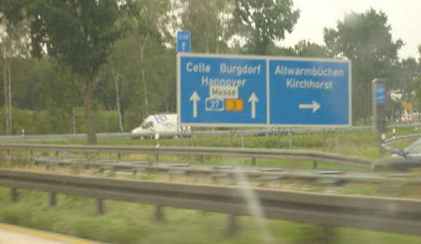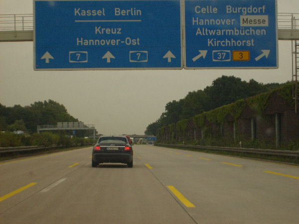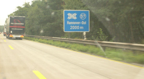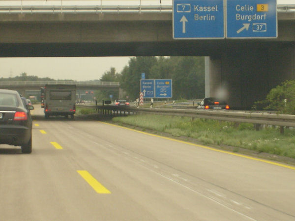 Für einige Kilometer gibt es gelbe Markierung und keinen Standstreifen. Diese Um- markierung fand anlässlich der EXPO 2000 in Hannover statt und ist bis heute geblieben!