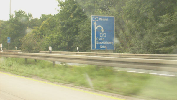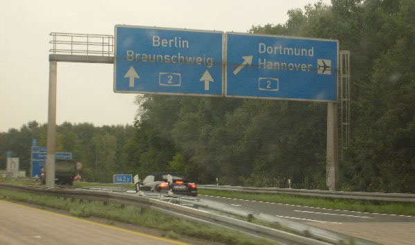 Über eine extreme Rechtskurve gelangt man auf die A 2 Richtung Berlin