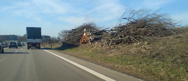 Rodungsarbeiten im Zuge des sechsstreifigen Ausbaus München-Augsburg. Aktuell ist die komplette Trasse gerodet und auf drei Abschnitten läuft der eigentliche Ausbau.