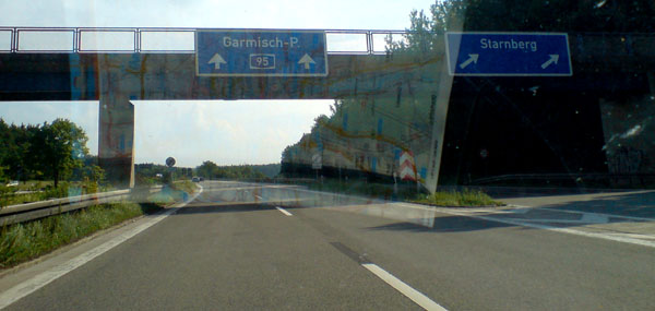 Die (nicht ausgewiesene) A 952 nach Starnberg zweigt ab und die Autobahn wird leerer