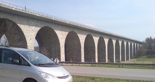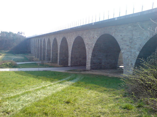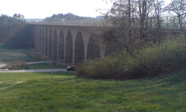© Peter Hochrein, 30.03.2007 Impressionen des Holledauviadukts zwischen Dreieck Holledau und Pfaffenhofen. Diese Bogenbrücke wurde bereits 1938 fertig gestellt und 1945 teilweise zerstört. Später wurde sie wieder aufgebaut und die Fahrbahnen beidseitig symmetrisch verbreitert.