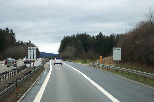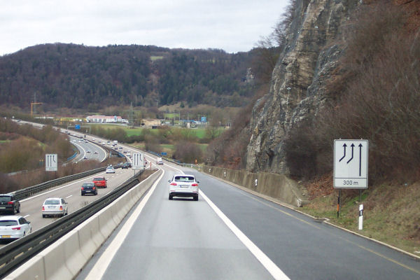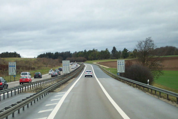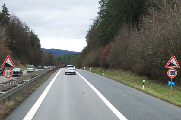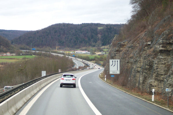 Beginn der Fahrbahnteilung am Kindinger Berg, die nun auf vier Kilometern besteht, wie