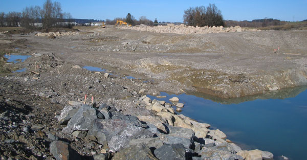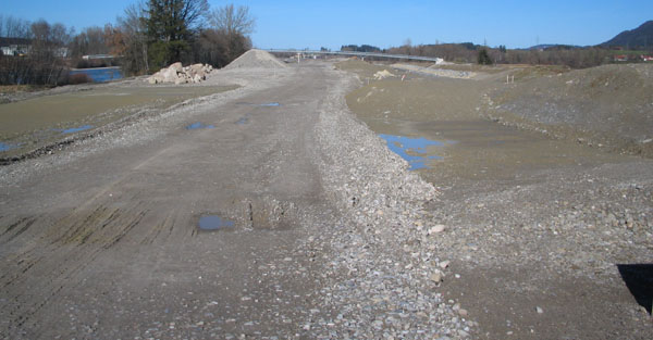 Verlegung der Iller. Der alte Flusslauf wurde trockengelegt.