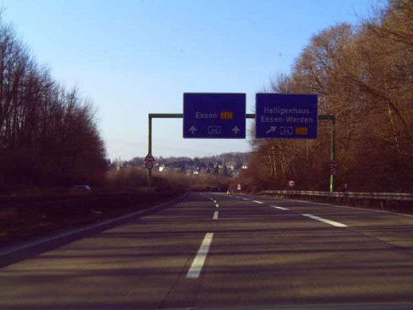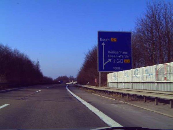 Der erste Vorwegweiser zum Dreieck Velbert-Nord