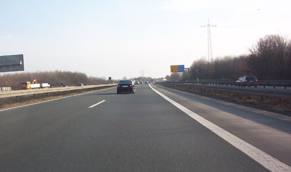 Im Bereich des Kreuzes. Rechts sieht man die Nebenfahrbahn, über die man zur A 2 Richtung Oberhausen bzw. Bielefeld gelangt.