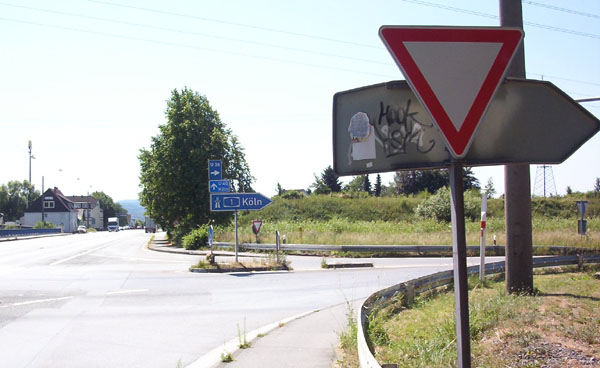 Am Anschluss Schwerte. Ganz links im Bild als dünne Stange zu erkennen: Der Werbepylon eines allseits bekannten Bürgerbraters.