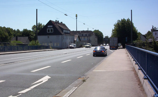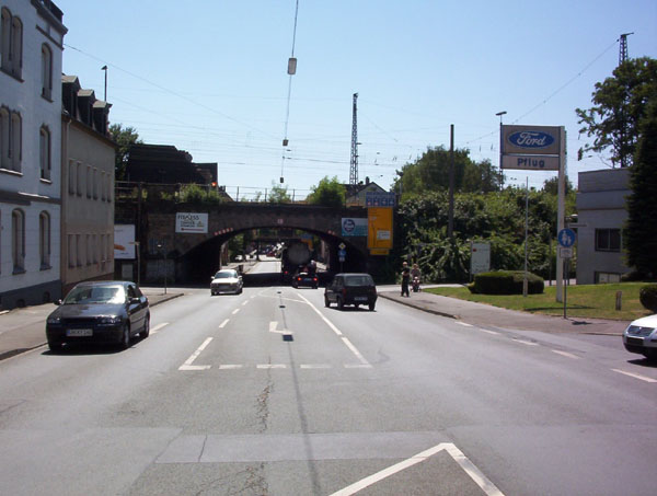 Auf der Schwerter Seite der Autobahn staut es sich öfter noch mehr als in Dortmund- Berghofen. Ein Grund dürfte diese Engstelle einer Eisenbahnunterführung sein. Hinter der nachfolgenden Kreuzung beginnt die Schwerter Innenstadt. zurück zur Übersicht |