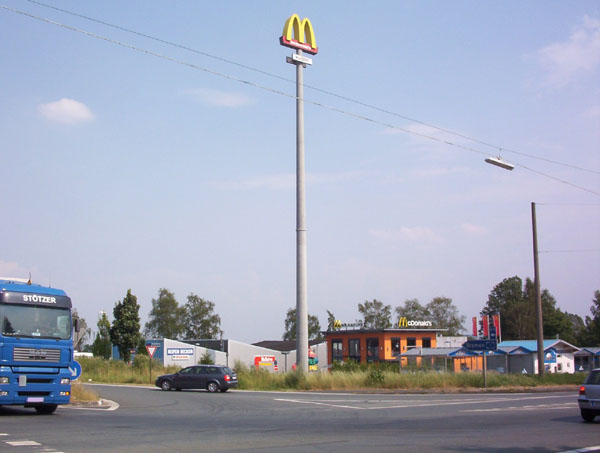 ...Mmm...noch Fragen?!?... Gleich neben dem Autobahnanschluss platziert mit weithin sichtbarem Pylon.