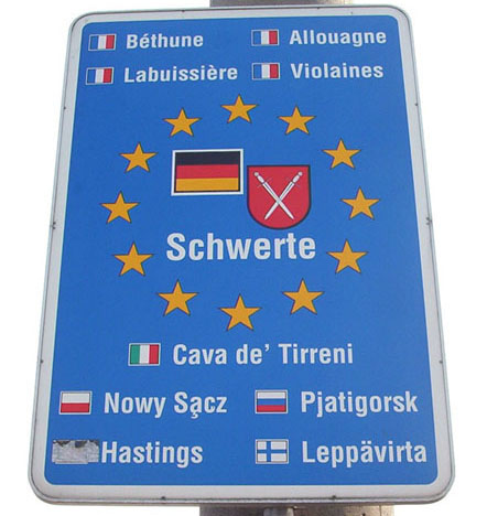 Wie viele Städte wirbt auch Schwerte am Ortseingang mit seinen Partnern: auffällig viele Franzosen. Und Quizfrage: Wo liegt Hastings?