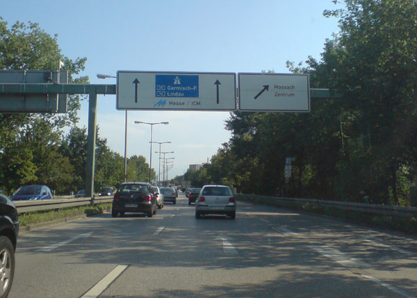 Vorwegweiser der AS Arnulfstraße. Über diese Abfahrt gelangt man nach einigen Kilometern auf die A 8 nach Stuttgart. weiter zu Teil 2 zurück zur Übersicht |