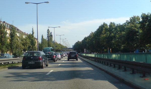 Auf der 170 m langen Hochstraße über die Dachauer Straße