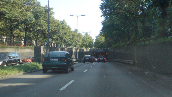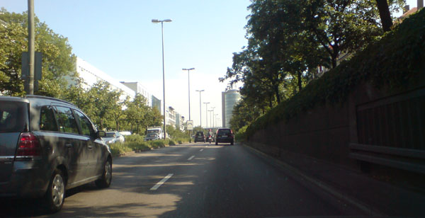 Im Olympiakreuz. Rampe auf die verstopfte Landshuter Allee nach Süden.