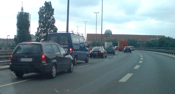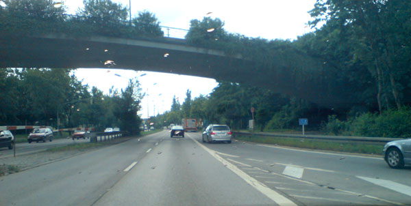 Auf der 860 m langen Donnersbergerbrücke, die u. a. über das Gelände der Bahn führt