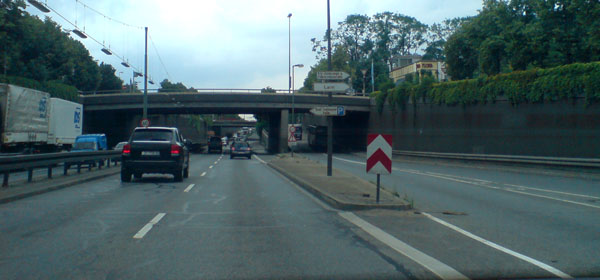 Hier, an der Auffahrtsrampe von der A 96, wird der Mittlere Ring einmal in den 1500 m langen Tunnel Garmischer Straße abtauchen. Längst sind die Bauarbeiten in vollem Gange, Ende 2015 soll der Tunnel fertig gestellt sein.