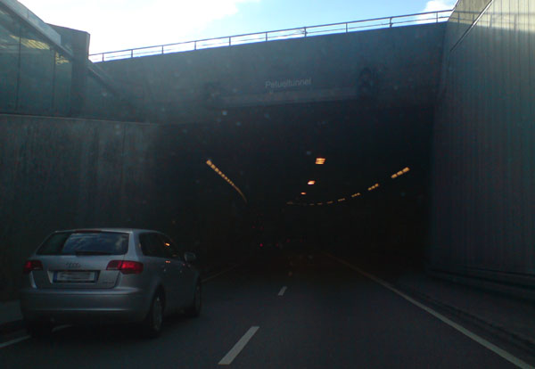 Einfahrt in den 1500 m langen Petueltunnel, der im Jahr 2002 fertig gestellt wurde