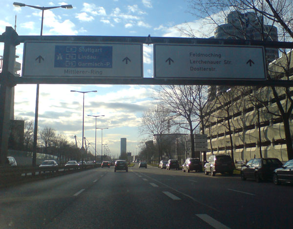 Zufahrt vom Olympiapark. Allmählich nähern wir uns dem Ende der Rundreise über den Mittleren Ring.