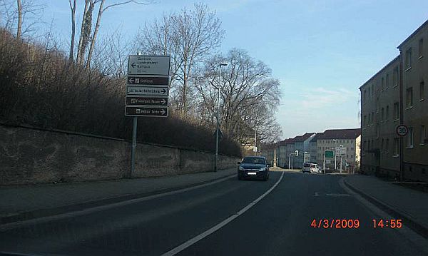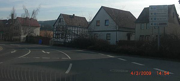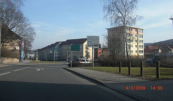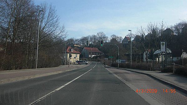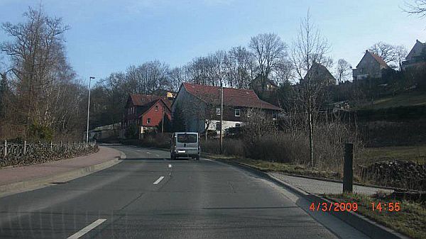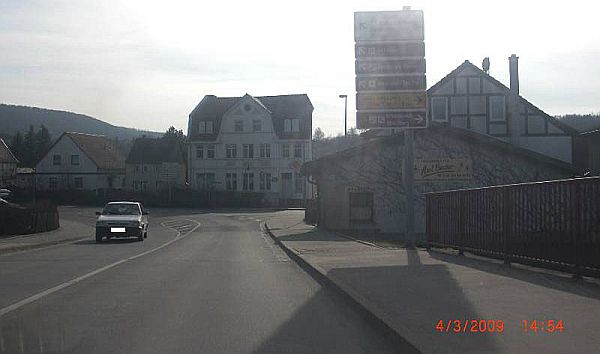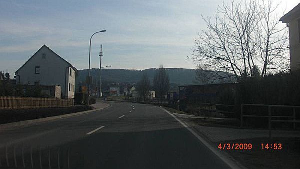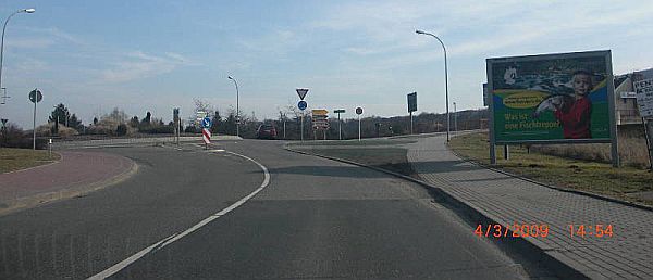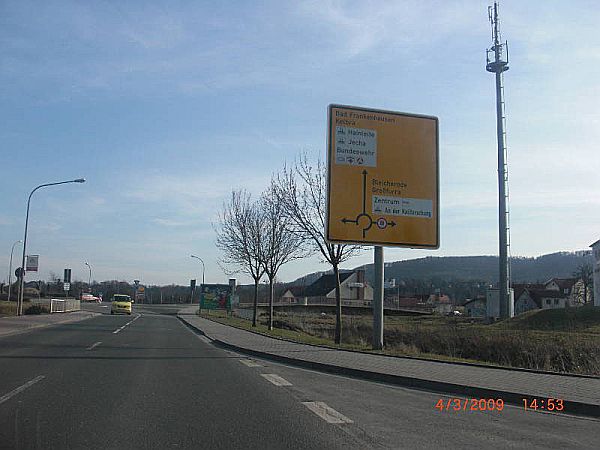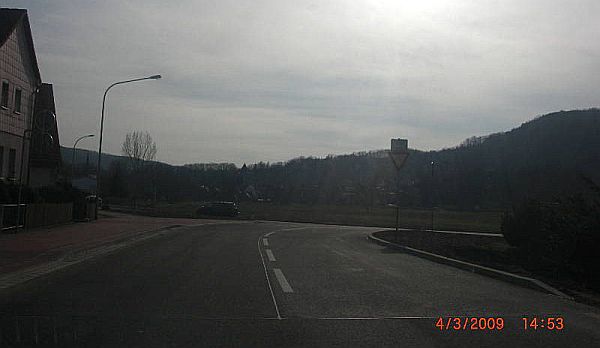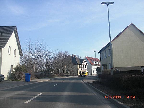 Kreuzung; rechts geht es nach Großfurra (Nebenstrecke).