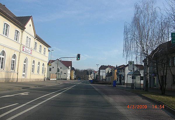Rechts das Arbeitsamt und diverse Geschäfte. Aldi Nord und Süd werden in dieser Region nicht unterschieden.