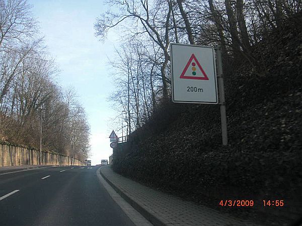 Hinweis auf Ampelverkehr und Geschwindigkeitsbegrenzung auf 30 km/h