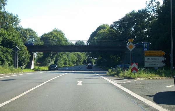 Wegweiser am Beginn der Stadtumgehung Münster. Von hier aus kann man nur aus Richtung Telgte auf die Umgehung fahren, nicht aber aus Richtung Münster.