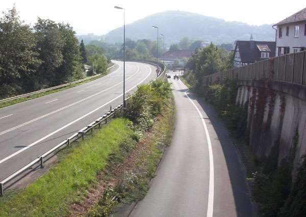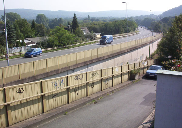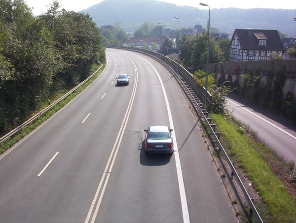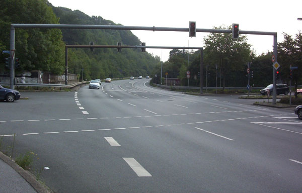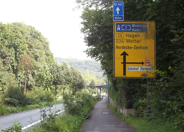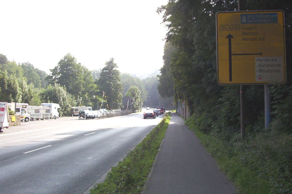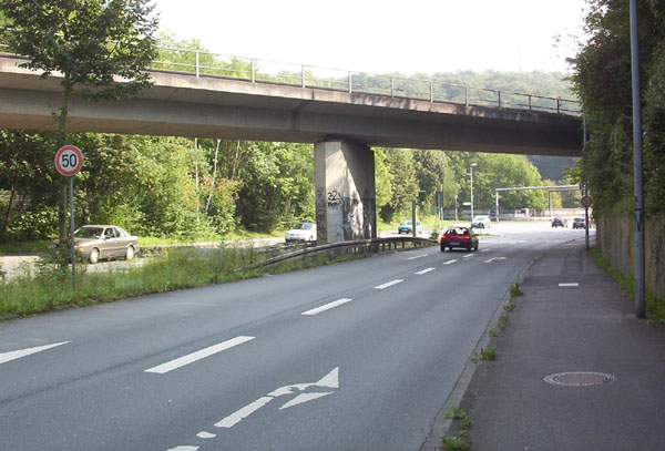 AS Herdecke von der Friedhofsbrücke aus gesehen. Hier trennt sich die B 234 wieder von der B 54.