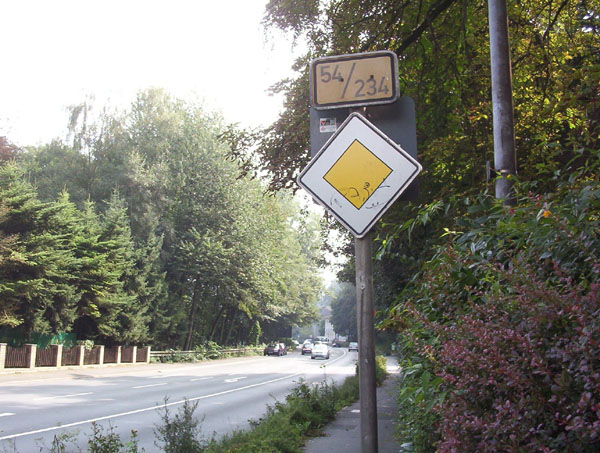 Am Abzweig Ellingholzweg fehlt dem Vorfahrtszeichen dieses Bundesstraßennummernschild
