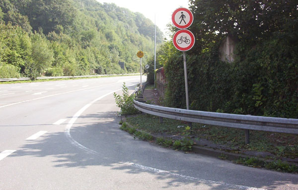 Ab hier ist die Straßenbenutzung durch Fußgänger und Radfahrer untersagt