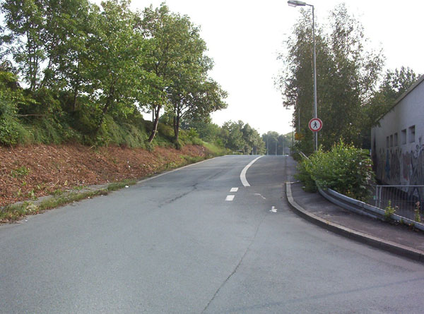 ...die hier die Hagener Straße/B 54 kreuzt. Etwa auf Höhe der Bushaltestelle wird die Stadtgrenze von Hagen überquert.