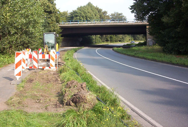 ...folgt zunächst der Vorwegweiser des Kreisels, dann die Eisenbahnunterführung...