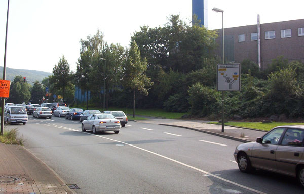 Auf der "Route der Industriekultur" geht es geradeaus zum "Koepchenwerk", einem Pumpspeicherkraftwerk