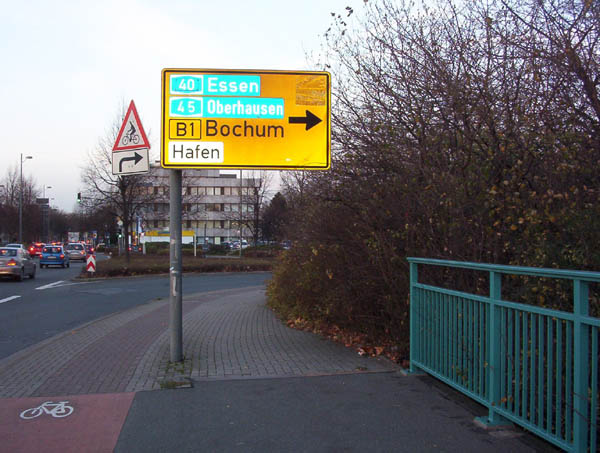 Der zweite Abzweig auf die B 1, diesmal in Richtung Bochum. Man beachte das "B" in dem Bundesstraßennummernschild!