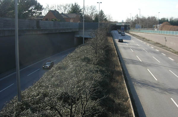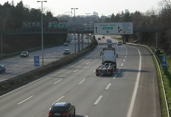 Hinter der AS Buchforst steigt die Bundesstraße an um auf einer 2000 m langen Hochstraße und der anschließenden 1000 m langen Zoobrücke den Betriebsbahnhof Deutz, das Kölner Messegelände und den Rhein zu überqueren. zurück zur Übersicht |