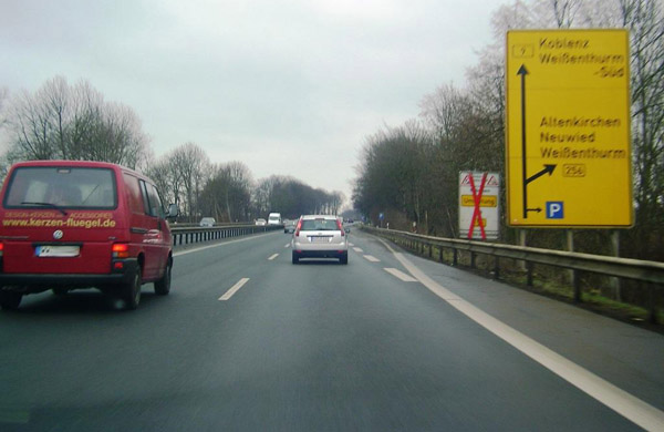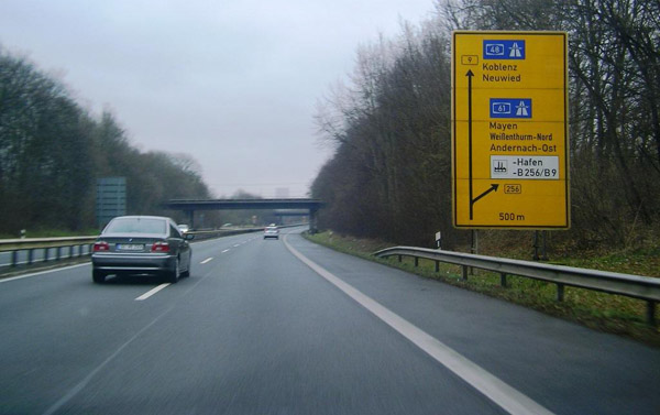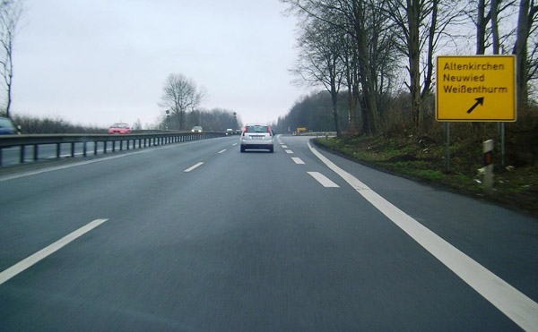 Abfahrt zur autobahnähnlichen B 256 nach Neuwied