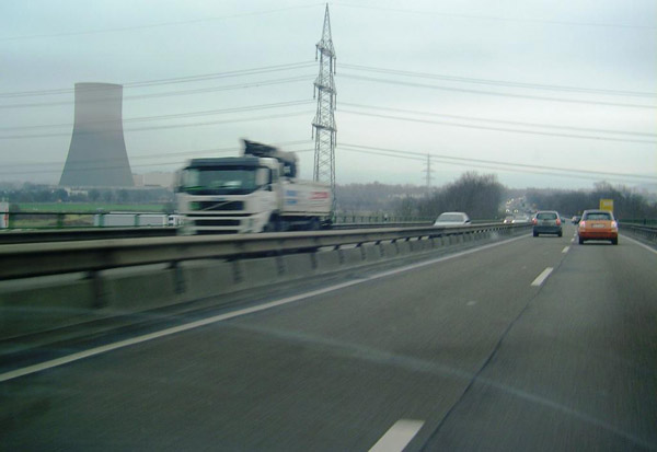 Links: Das abgeschaltete AKW Mülheim-Kärlich. Auf Grund formaler Mängel war die über 4 Mrd. Euro teure Anlage nur ein gutes Jahr in Betrieb und wird nun bis 2012 für eine weitere halbe Milliarde Euro "entsorgt".