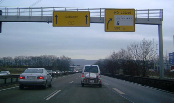 Abfahrt ins Lützeler Gewerbegebiet. Der Beschleunigungsstreifen aus Bubenheim wird zum Verzögerungsstreifen für Lützel.