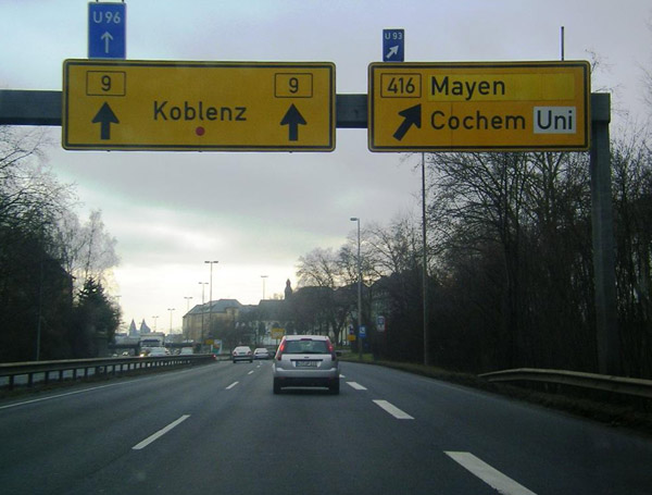 Abfahrt Richtung Cochem/Mayen (alte 9 und neue 6)