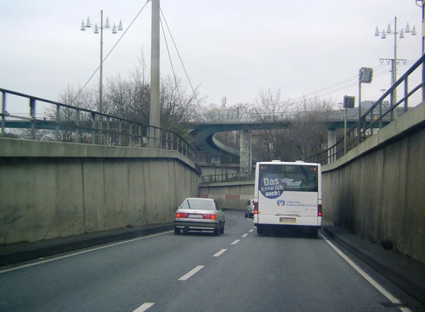 Fußgängerbrücke über dieses innerstädtische Bundesstraßendreieck