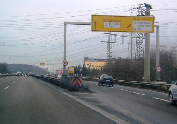 Die Abfahrt nach KO-Bubenheim/Kesselheim führt in drei Richtungen