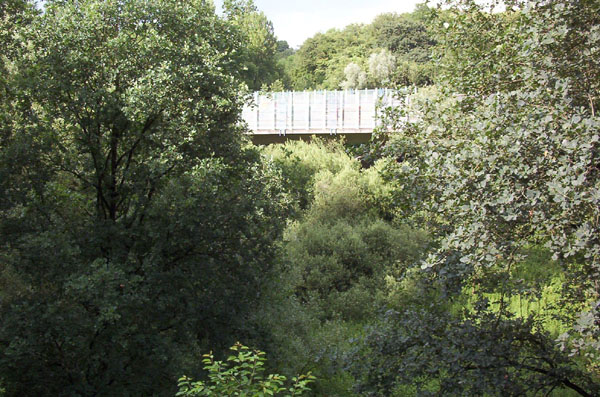 Die Talbrücke Hüller Bach von der hier parallel zum Oviedoring verlaufenden Wasserstraße aus gesehen weiter zu Teil 3 zurück zur Übersicht |