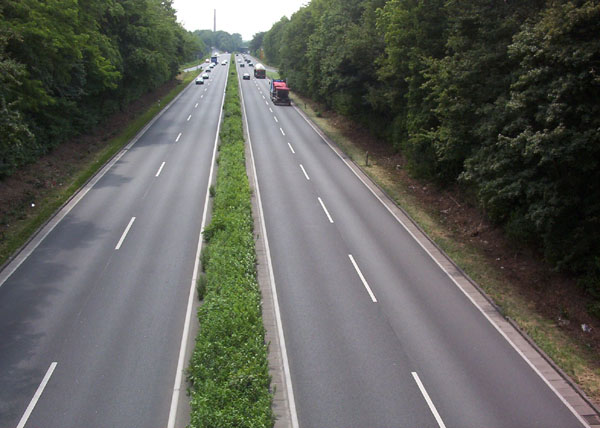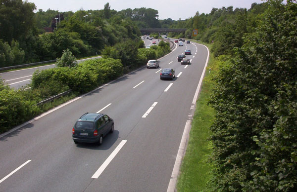 In Höhe der Brücke "Feldmark" nahe dem Hauptfriedhof. Hier geht der Sheffieldring in den Nordhausenring über. Man beachte den Seitenstreifen in Fahrtrichtung Bochum-Gerthe!