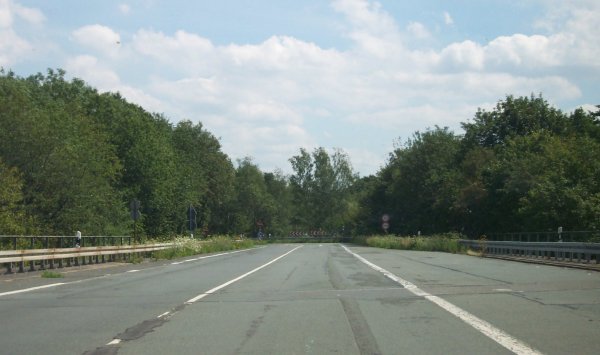 Auf der Brücke über die Halterner Straße. Dahinter ist die scharfe Linkskurve zu erkennen. Einst war hier die AS Marl-Sinsen der verworfenen A 40 vorgesehen.