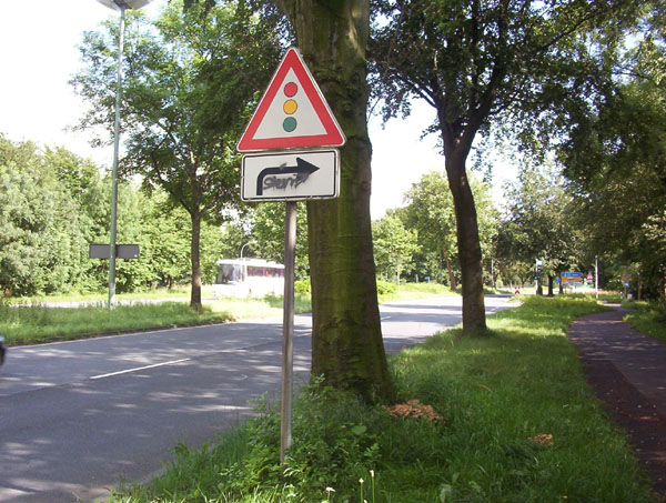 Hinweis auf eine Lichtzeichenanlage an der Zufahrt zum Oviedoring