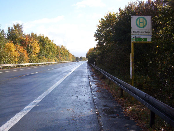 An der Bushaltestelle „Markfelder Weg". Ungefähr hier soll sich zukünftig die B 474n von der L 609 trennen. Richtung Datteln