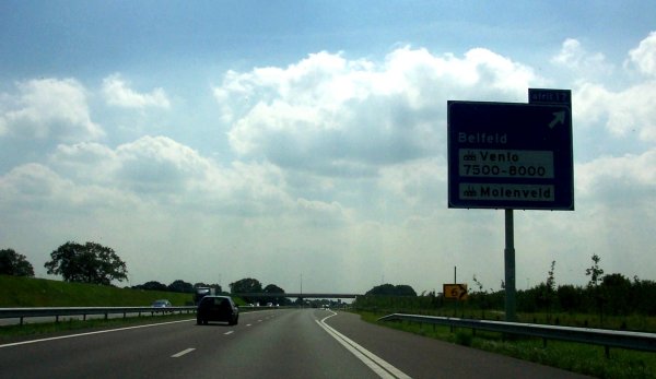 Hinweis für Anlieger eines zu Roermond gehörenden Industriegebietes an der AS 18 (die nächste) abzufahren. Dahinter wird ein Tunnel angekündigt. weiter zu Teil 2 zurück zur Übersicht |