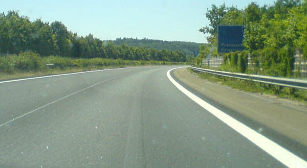 Hinter Zweibrücken (AS 32). Auf diesem neu asphaltierten Abschnitt fehlt noch die Markierung.